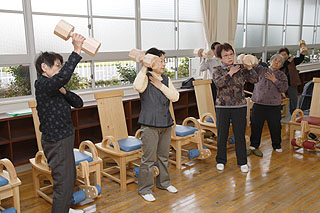 | ③ウッドブロックトレーニング | 25分 | ウッドブロックを使い、椅子に座った状態で下肢トレーニング |