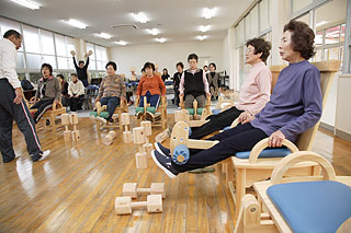 旧保育所を改築し、高齢者の介護予防トレーニングと学童保育のための施設です。介護予防室に、弊社の筋力トレーニングマシンが複数台置いており、毎週月曜日13:30〜15:30まで、毎回20人〜30人集まり、主に筋力トレーニングやレクリエーションなどを行っています。参加者の平均年齢は、約70歳。