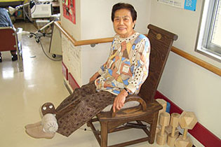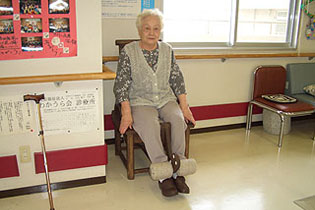車椅子や杖をついている方が多いそうですが、可能であれば、できるだけ、トレーニングをするように勧めているそうです。 入所者の方、みなさんとても明るく朗らかな表情をしているのが印象的でした。
